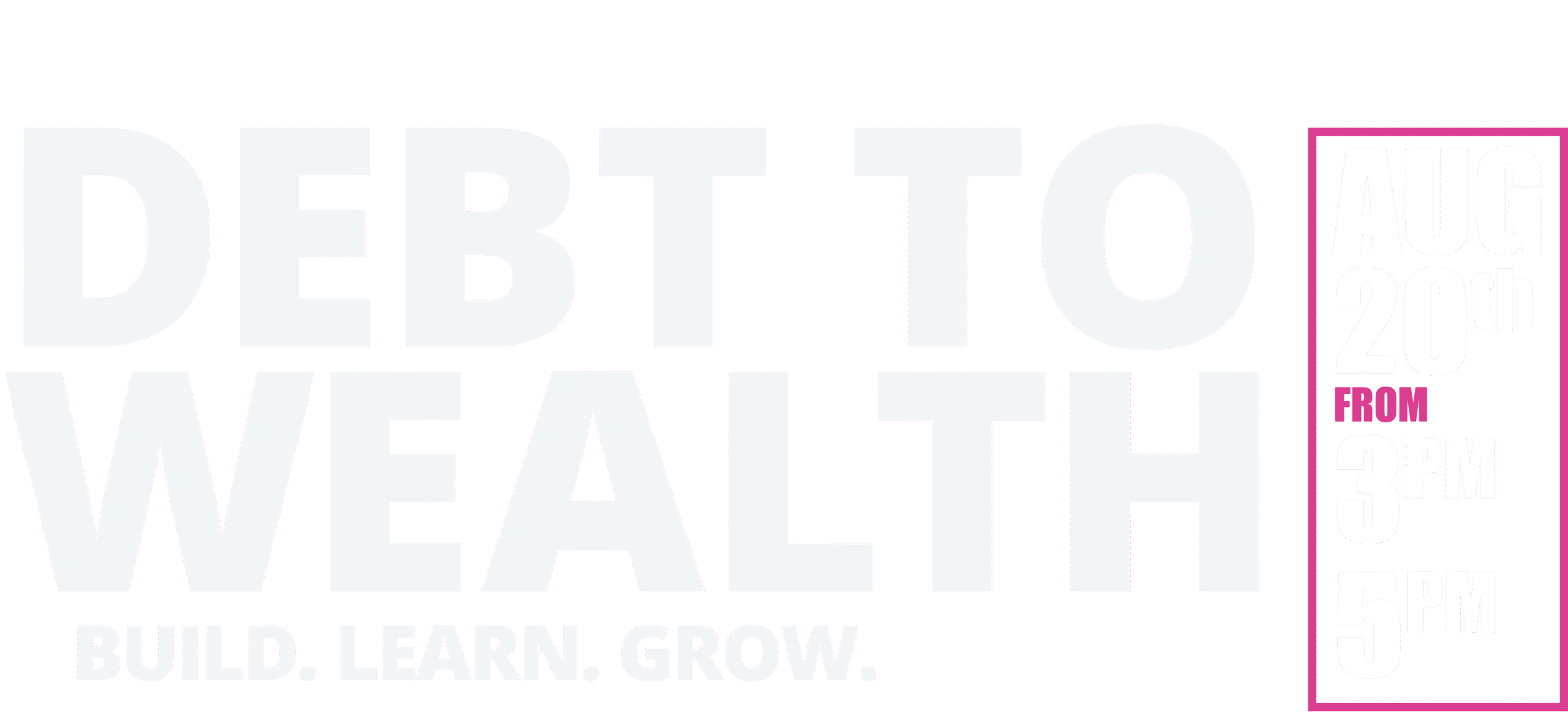 Join us Aug 20 for the Debt-to-Wealth Workshop! Learn to budget, boost credit, crush debt & grow wealth. Limited seats—register now & start your journey to financial freedom!